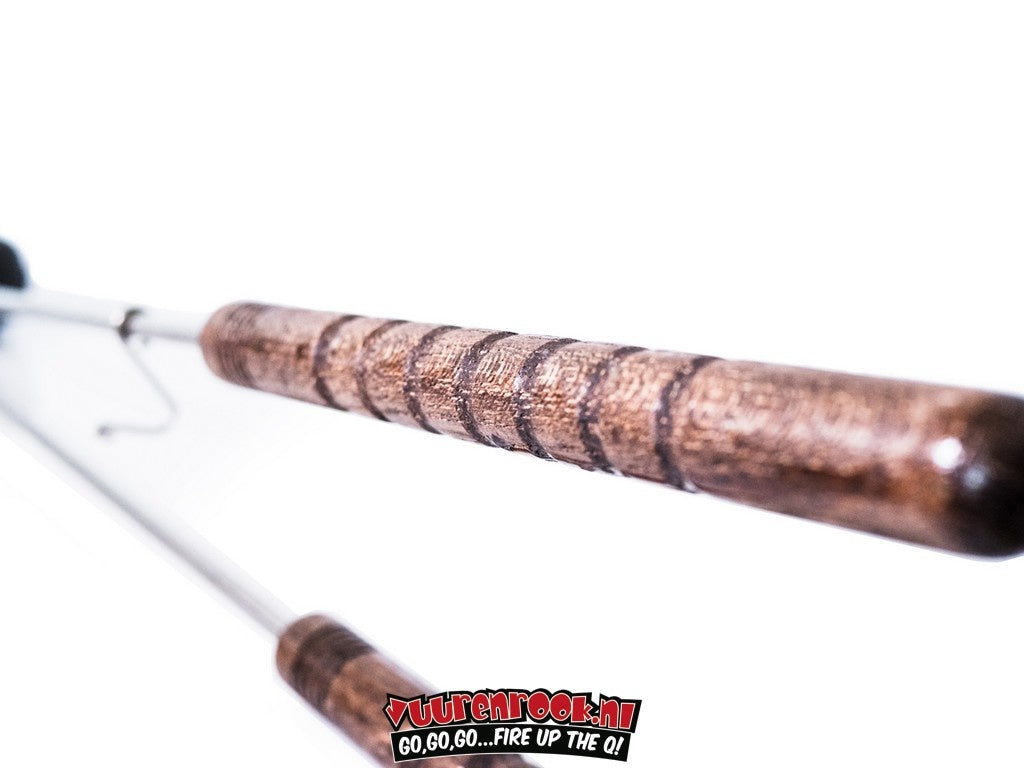 - Extra lange RVS stelen met houten handvaten